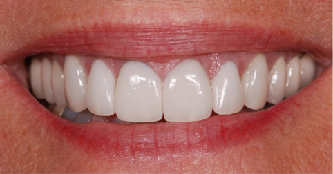 这里的主要目标是美观。把边缘往腭侧多移动一点,修复与牙体之间的接缝越不明显,也不容易看到内部基牙的颜色。